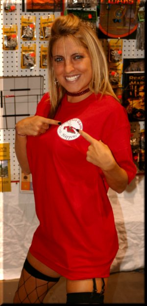 Yup, Richard looks like a dork mostly when babes are touching him. Jessica said I smelled good! On Sunday of a 4 day con! That's, like, unheard of at a gaming con. Durhh. |