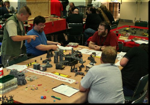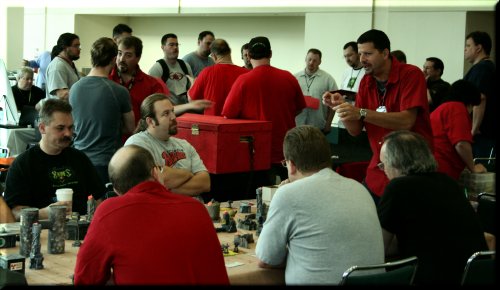 We ran Injurius Games Keep What You Kill for the last time at Origins... from now on, we'll be running the Meck Keep What You Kill. No worries, we ran it at Gen Con with good results. The Keep What You Kill is a 12 player team event where each player pits his or her 5 Gladiators (or Mecks!) against the other side. Each kill earns the player a free miniature of the type killed, to be picked up at our booth. |