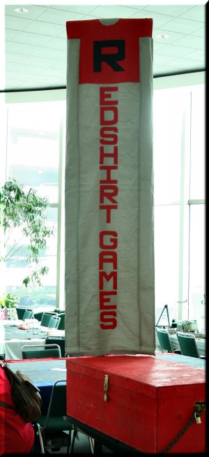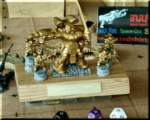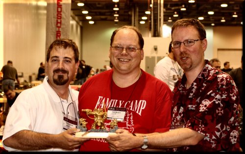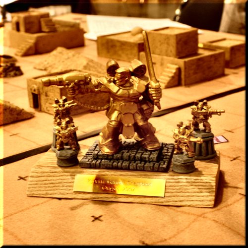 The Trophy. Be warned! Next year, it's going to be different. We're going to run qualifiers all week-end, with finals Sat night or Sunday morning. We'll be running Injurius Games and D12 Fantasy tournaments. Be the first to take home the D12F Blazon Trophy! |