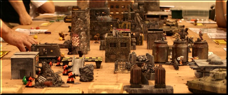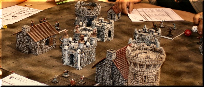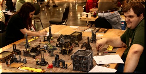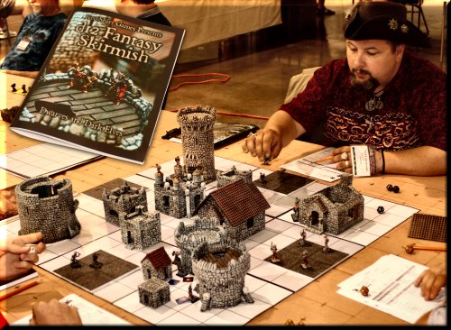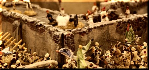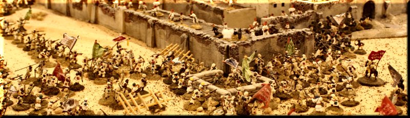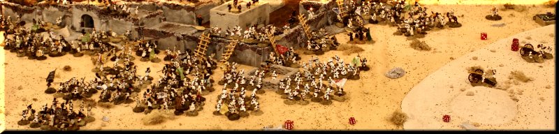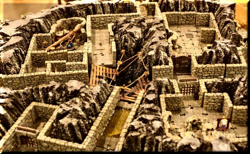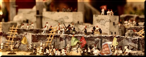 Above... Some sort of giant fort attack. Huge table, hyper-realistic terrain, thousands of well-painted screaming attackers. |