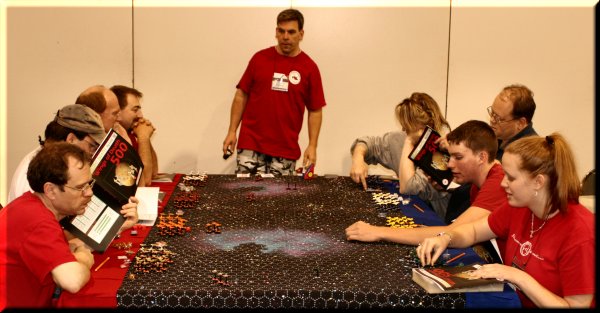 The D&D Monster Mash. We had some record games at Gen Con for this event. Showed above, our first 24 player game. Also, the tallest player ever in the Monster Mash - in the picture above, note Devin standing on a chair next to that guy in the white shirt. Can you say basketball scolarship? |