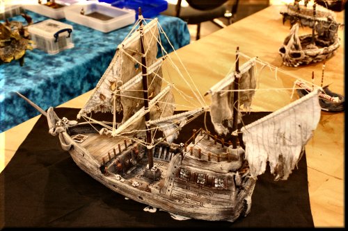 Below: beautiful pirate ships, hand-made out of clay, wood, rope and cloth. Amazing. | |||