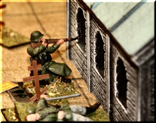 Gen Glen. The boildings and soldiers were from the Road to Stalingrad playset produced by TSSD (Toy Soldiers of San Diego). |