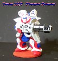 Geisha, Team Sun The Plasma Gunner hurls big green balls of nuclear fire at his enemies from close range. Geisha's "professional" name bear little resemblance to this tough, middle-aged female soldier who served with distinction in the Asteroid Belt during the Meck Wars. |
