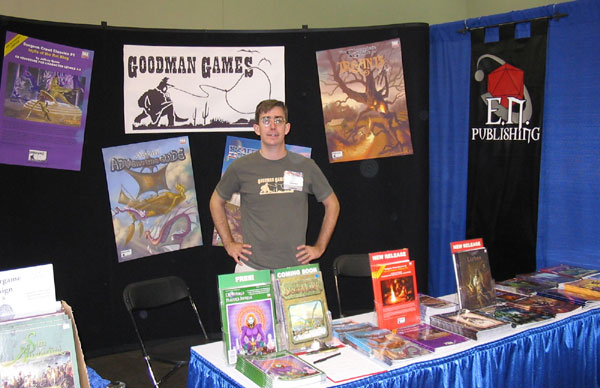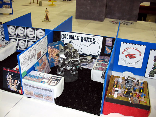 Goodman Games joined us very shortly before the convention, but we did a pretty good job of setting up their booth. Here are some photos taken by the folks at Goodman Games. Here is a direct link to their site where the photos are posted. Note the resemblance of our little booth to the real one. |