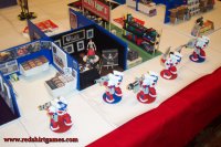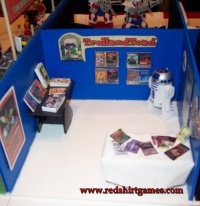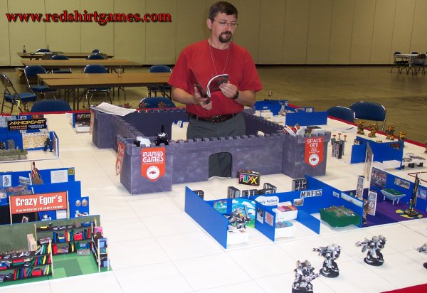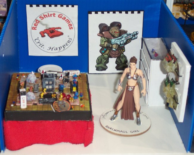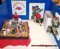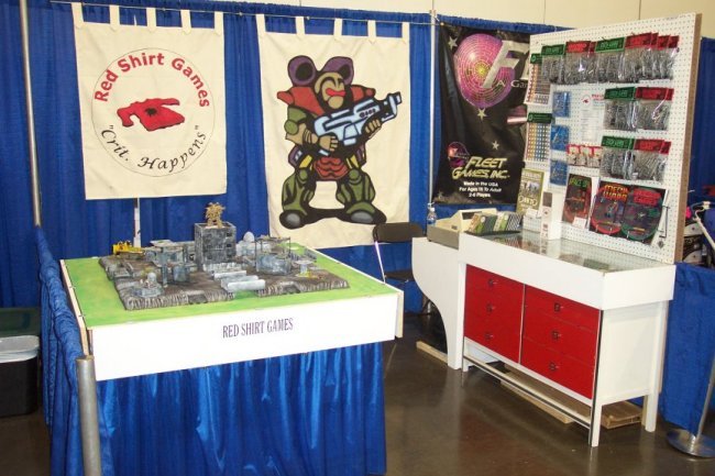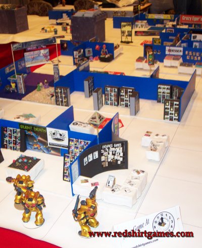 These are the original red Shirt Games supporters. When all others spurned us, they took us aside and said "smarten up, man!" The year before we got our own booth, we sold our product in theirs, and used their terrain pretty much exclusively. About 1/2 of all our terrain is made by Armorcast! Their booth, by the way, is one of only two that were completely made by the vendor - we merely provided a space on our table and Tim and Dave filled it excellently! |