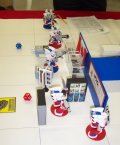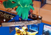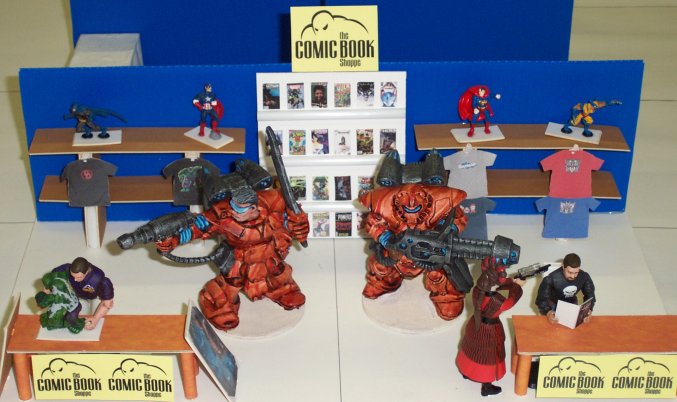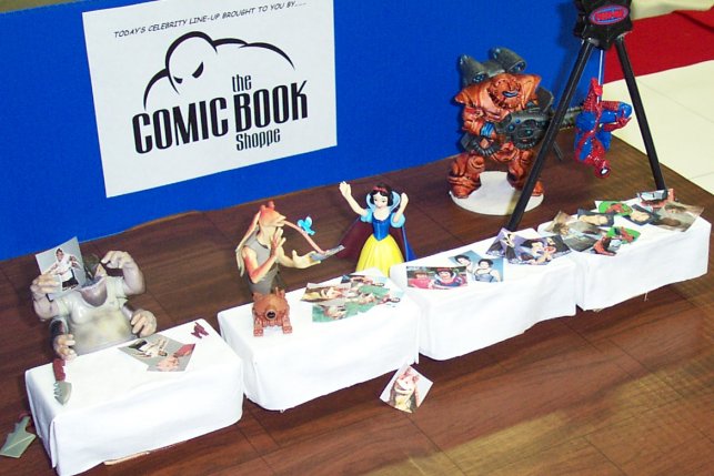 The Comic Book Shoppe, on Bank Street in Ottawa, carries, yup, comic books, but also has a huge selection of Manga, Anime, figurines and t-shirts. They also win a prize for "keen-ness" for the ultra-cool booth that they set up themselves, and for the 4 figurines they provided for our autograph signing session. Yes, that's Jar-Jar getting blasted by Team Slosh Beer's Tonerre. |