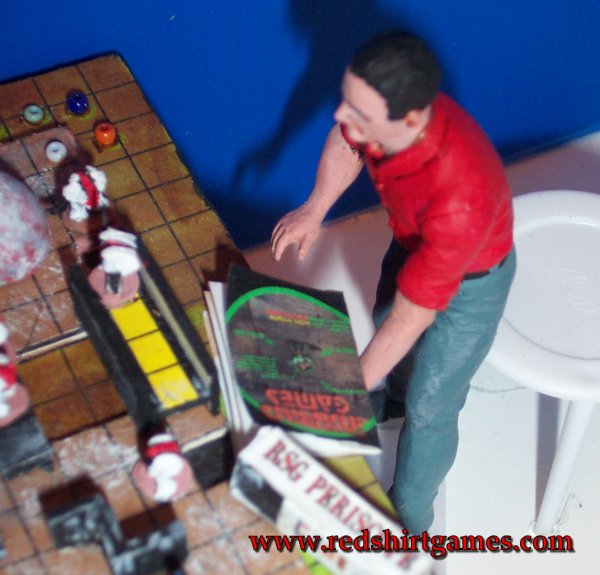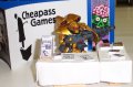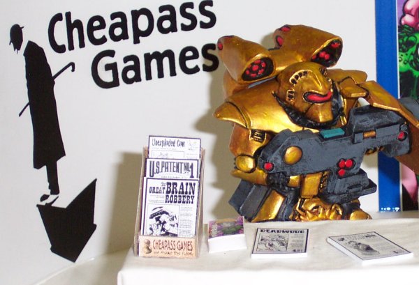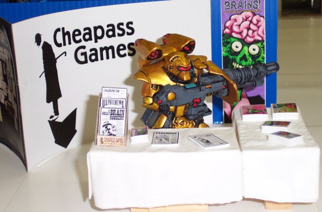 It's official. Cheapass has earned the title of "keenest company" in terms of buy-in to our crazy idea. When we contacted them, they not only responded, but they sent us about 5 MB of images to use to create their booth. They sent us images of all their games, of their posters, even the cut-outs to make tiny little magazine racks, which we did. Way to go Cheapass! |