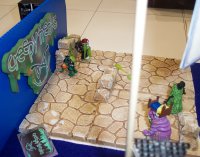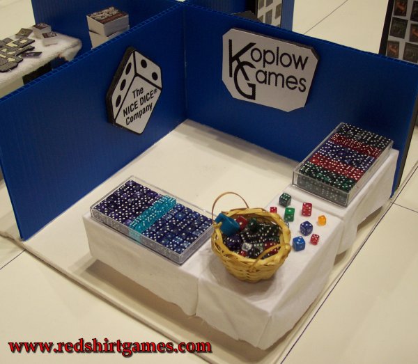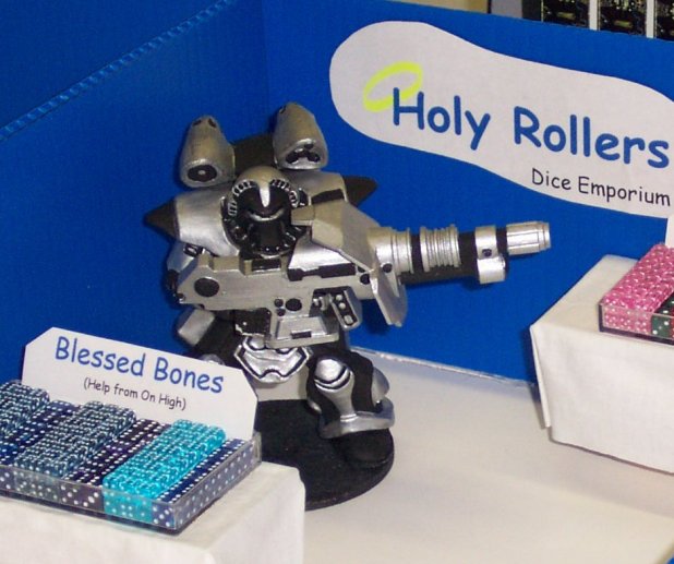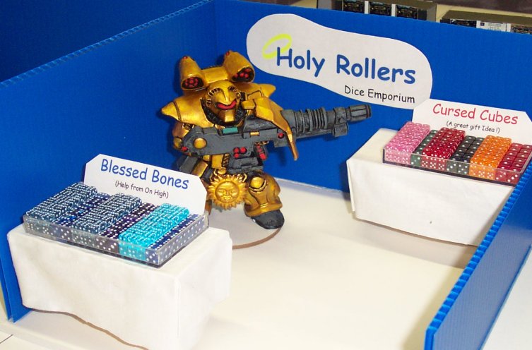 Holy Rollers One of our "made up" booths. We're really hoping a real die company will come along and let us put their name on our cool selection of tiny little dice. |