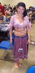 Tami from Pixie Dust Games. It's a tarot based d20 game of Urban Fantasy. Actually, this photo is from Origins, but she was at GenCon too! Only I did not manage to photograph her, so I'm re-using this photo. |