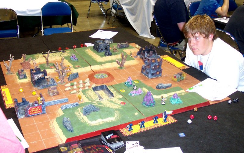 Our annual Gen Con Injurius Games tournament... click on the thumbnails to view the full photo. Again, this tournament would not have been possible without the able organizational skilz of Derek Flowers, and obviously, the participation of the players. Finally, an honorable mention: Zach Jakubowksi (front row, left in the group photo) did not win, but I am sure he learned one or two things that he will apply when he plays in next years' tournament! |
