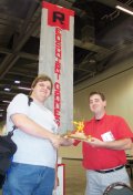 handing off the trophy (Made by him!)